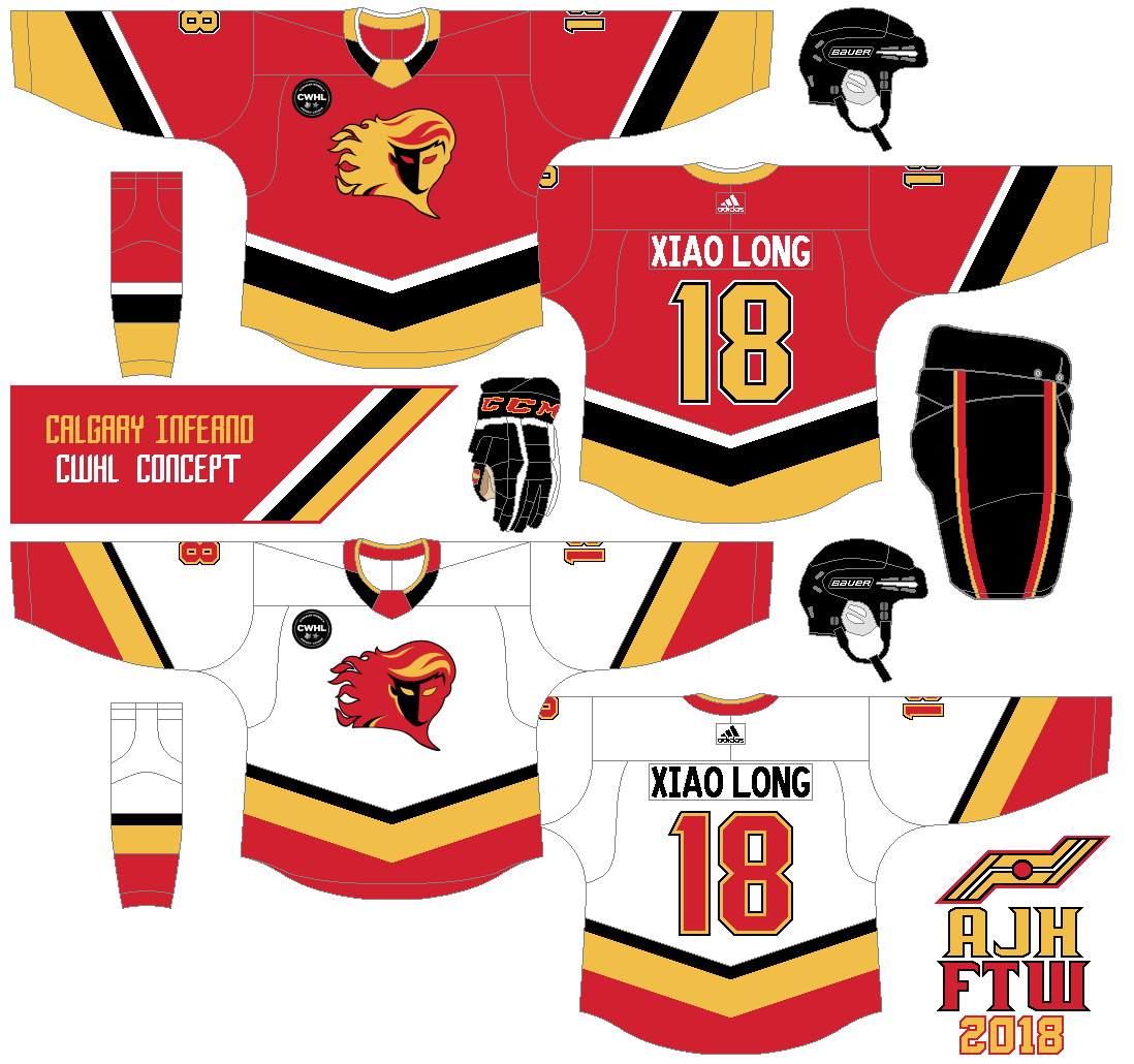 Hello, Alan here for another Saturday post here at AJH HJA. taking a break from fan request post for the time being until I get more done (if I get to them ha ha ha) anyway this one is a concept base on a Canadian Women's Hockey League team known as the Calgary Inferno. Believe it or not, I did this concept for the HJC's the season tournament sadly my concept got dead last, why? Simply because I send the wrong set to the contest witch the reason why it got a dead last result.